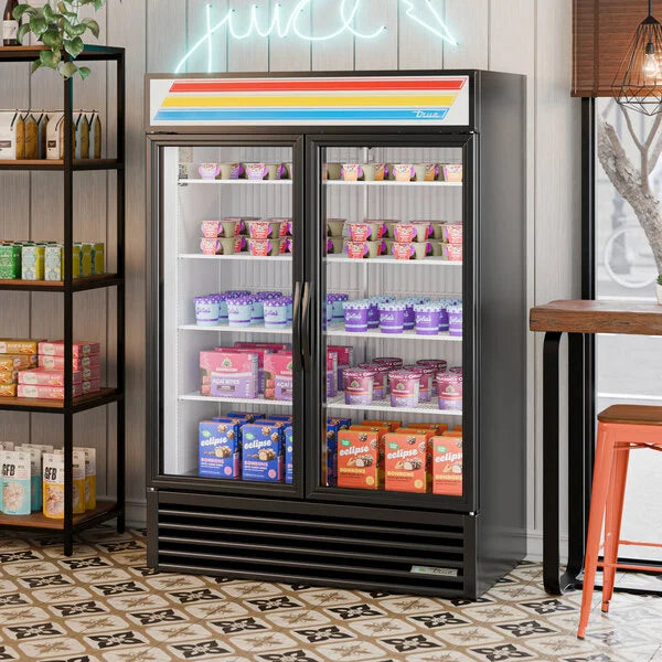 The True GDM-49F-HC~TSL01 is a two-section freezer merchandiser designed for reliable frozen storage and superior product display. Operating at -10°F, the unit features two triple-pane thermal glass hinged doors that maximize visibility while maintaining consistent temperatures under bright LED lighting.